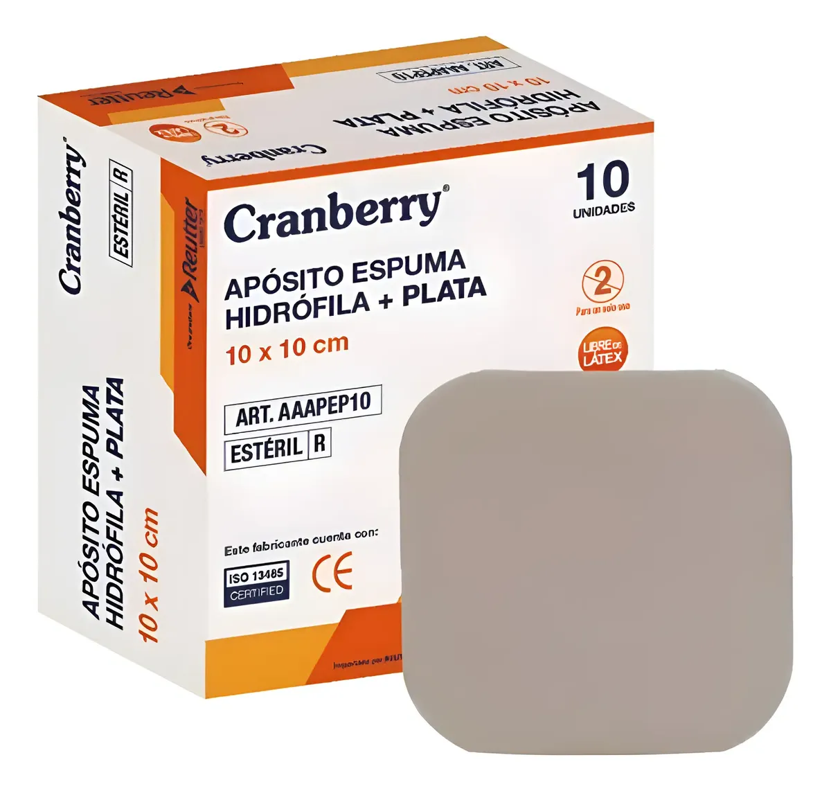 Apósito espuma hidrófila + plata, Cranberry, caja x 10 unids