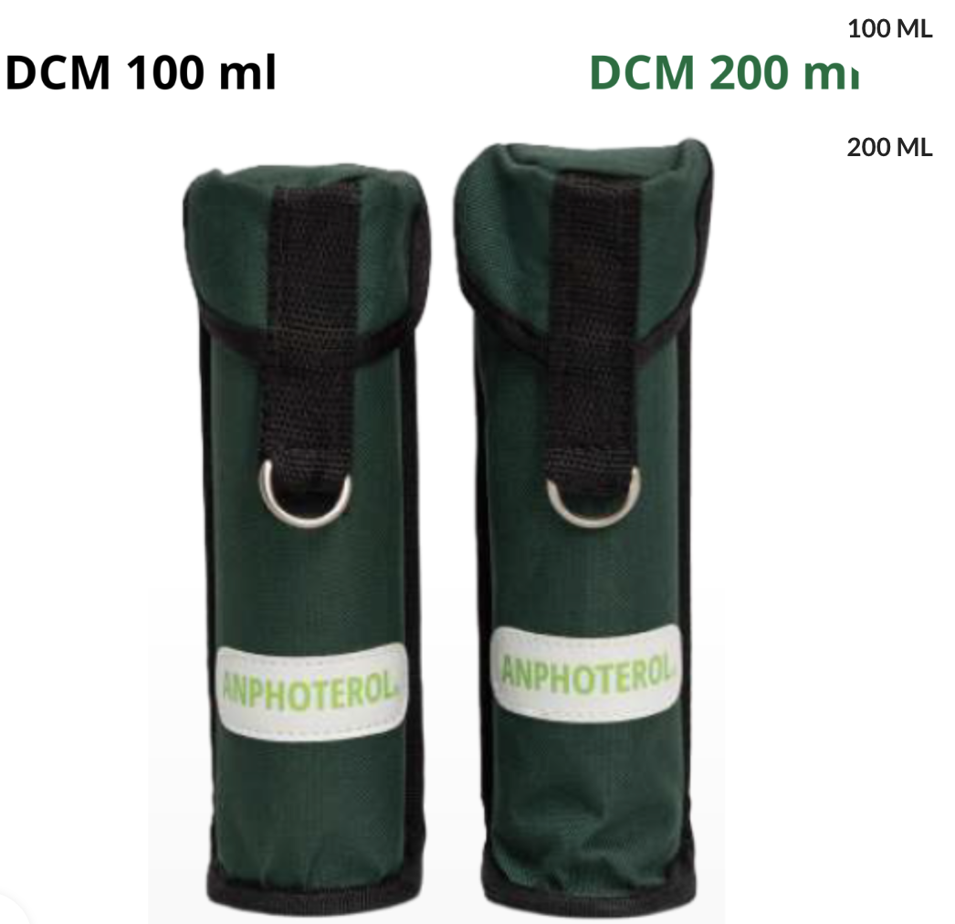 Estuche táctico ligero cerrado de tamaño único para portar los dispositivos DCM100 y DCM200, respectivamente. Permite proteger el dispositivo médico ante ambientes agresivos y donde la cantidad de partículas en el aire sea moderada o alta. Garantiza el correcto transporte y mantenibilidad apropiada del Anphoterol®